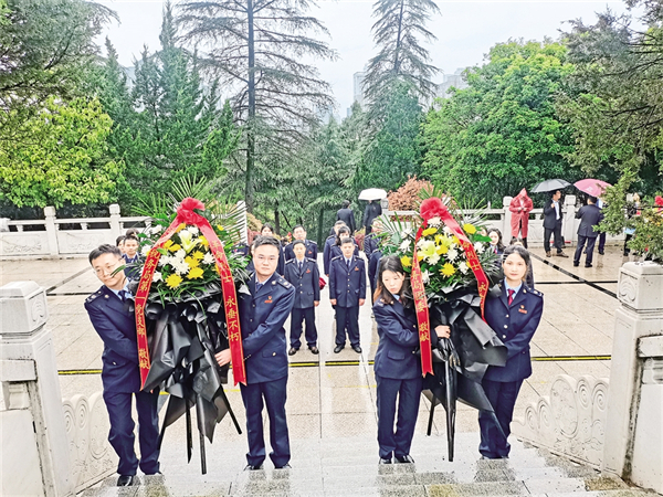 ▲ 4月3日,漢濱區稅務局組織黨員干部前往安康烈士陵園祭奠革命先烈,弘揚革命精神。陳榮斌 攝