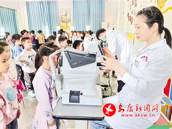 4月17日,漢陰縣婦幼保健院到蒲溪鎮小學教育集團開展學生視力檢測。 鄧永新 攝Uhh安康新聞網