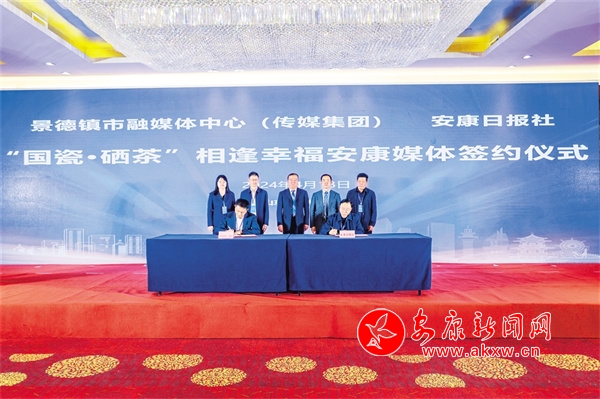 △安康日報社與景德鎮市融媒體中心(傳媒集團)舉行“國瓷·硒茶”相逢幸福安康媒體簽約儀式