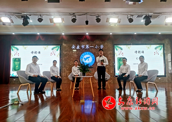 讀書成果展示匯報環節,安康一小校長胡剛以《閱讀“十個一” 幸福“百分百”》為題匯報學校書香校園建設成果,為師生們帶來了精彩紛呈的經典誦讀、讀書沙龍、親子誦讀、課本劇表演、優秀教師閱讀經驗分享等展示。