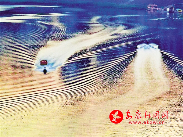 “五一”小長假期間,快艇在漢江安康城區東壩段載著游客往返穿梭,成為一道獨特的風景。吳定國 攝ekf安康新聞網