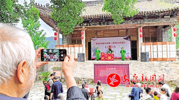 紫陽縣向陽鎮的北五省會館景區迎來了八方游客。圖為5月1日下午,游客在北五省會館小院里欣賞《紫陽民歌劇》專場演出。儲茂銀 攝ekf安康新聞網
