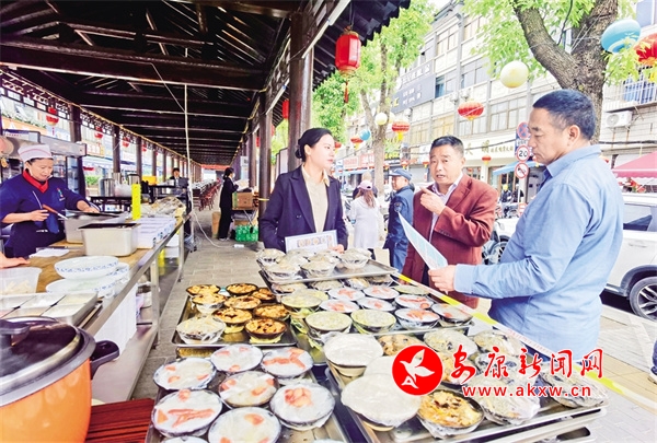 漢濱區老城街道“五一”小長假期間在東關開展民俗美食體驗活動,吸引不少游客與市民駐足品嘗。陳德模 攝ekf安康新聞網