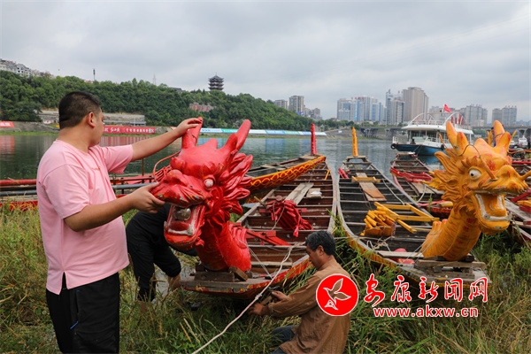 安康市體育服務管理中心主任、安康龍舟節主題活動水上導演劉平平介紹:“今天28支龍舟隊集結下水,下水后要安裝龍頭、龍尾、鑼架、鼓架和棹,達到翹頭翹尾的最美觀感。然后我們就要開始進行試水、適應性訓練、表演訓練和比賽項目訓練,爭取達到最佳的狀態參加比賽”。Ruy安康新聞網