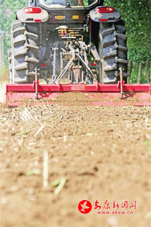 5月27日,隨著旋耕機的刀片“鉆”進土地里,機器走過后,剛剛收割的地面變得平坦松軟,記者在漢陰縣蒲溪鎮公星村3組看到,趁著晴好天氣,當地正組織農用機械對土地進行翻耕和播種,以便在秋收中再獲豐收。qRG安康新聞網