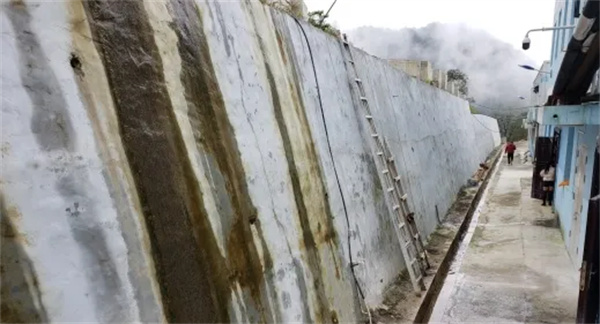 紫陽縣洞河鎮云峰村小米溪溝滑坡治理后修筑的擋墻。吳遠順 攝