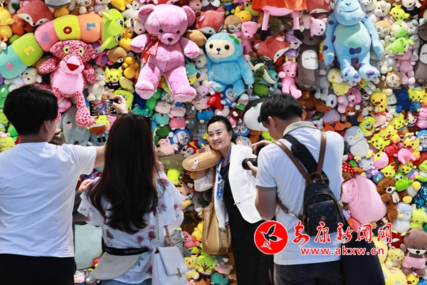 采訪團在恒口示范區毛玩中心拍照打卡。記者 潘潤生 攝zGr安康新聞網