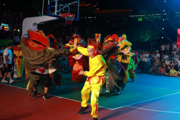 8月27日,賽事已經(jīng)連續(xù)激戰(zhàn)了12個日夜,每一場比賽都讓觀眾們大飽眼福。晚9時左右,隨著第一場比賽的終場哨聲響起,整個廣場的氛圍并沒有因為比賽的結(jié)束而冷卻,反而因為接下來的精彩節(jié)目而更加熱烈起來。《南宮雄獅》作為中場休息的特別節(jié)目火熱上演。隨著激昂的鼓點響起,兩只色彩鮮艷、造型威猛的雄獅在舞獅者的操控下,瞬間吸引了所有人的目光。它們時而翻騰跳躍,展現(xiàn)出驚人的靈活與力量;時而憨態(tài)可掬,逗得觀眾捧腹大笑。舞獅者們更是憑借高超的技藝和默契的配合,將雄獅的威猛與靈動演繹得淋漓盡致。