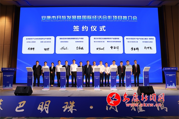 會上,市委常委、常務(wù)副市長黃戈授予東莞市電子信息產(chǎn)業(yè)協(xié)會、珠海市陜西商會、中山市陜西商會、佛山市陜西商會、江門市陜西商會“安康市對外經(jīng)濟(jì)合作聯(lián)絡(luò)站”標(biāo)牌。中國科學(xué)院院士、南方科技大學(xué)教授趙天壽發(fā)表了《碳中和儲能技術(shù)助推安康經(jīng)濟(jì)高質(zhì)量發(fā)展》主旨演講。市發(fā)改委、市市場監(jiān)管局、漢濱區(qū)、白河縣、瀛湖生態(tài)旅游示范區(qū)等部門和縣區(qū),圍繞富硒食品、新型材料、生態(tài)旅游、生物醫(yī)藥等重點(diǎn)產(chǎn)業(yè)鏈,發(fā)布了國際經(jīng)濟(jì)合作項(xiàng)目。市科技局、市行政審批服務(wù)局、陜西信合安康審計(jì)中心圍繞科創(chuàng)政策、營商環(huán)境、金融保障等方面進(jìn)行專題推介,多名科研院所專家現(xiàn)場發(fā)布科研成果產(chǎn)業(yè)化項(xiàng)目,F(xiàn)場集中簽約光伏組件、智能終端、毛絨玩具等16個招商引資項(xiàng)目,總投資44.9億元。