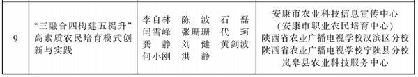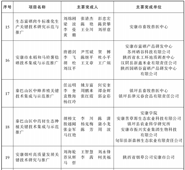為深入貫徹落實全國科技大會和全省科技大會暨科技成果轉化“三項改革”推進會精神,充分激發廣大農業科技工作者的積極性、主動性、創造性,加快推進農業科技創新與成果應用,助力全省農業農村高質量發展,經嚴格評選,省政府決定授予“奶牛生產性能測定(DHI)技術集成示范與推廣”等156項成果陜西省農業技術推廣成果獎。其中,安康市多個項目獲獎(名單附后)。eWr安康新聞網