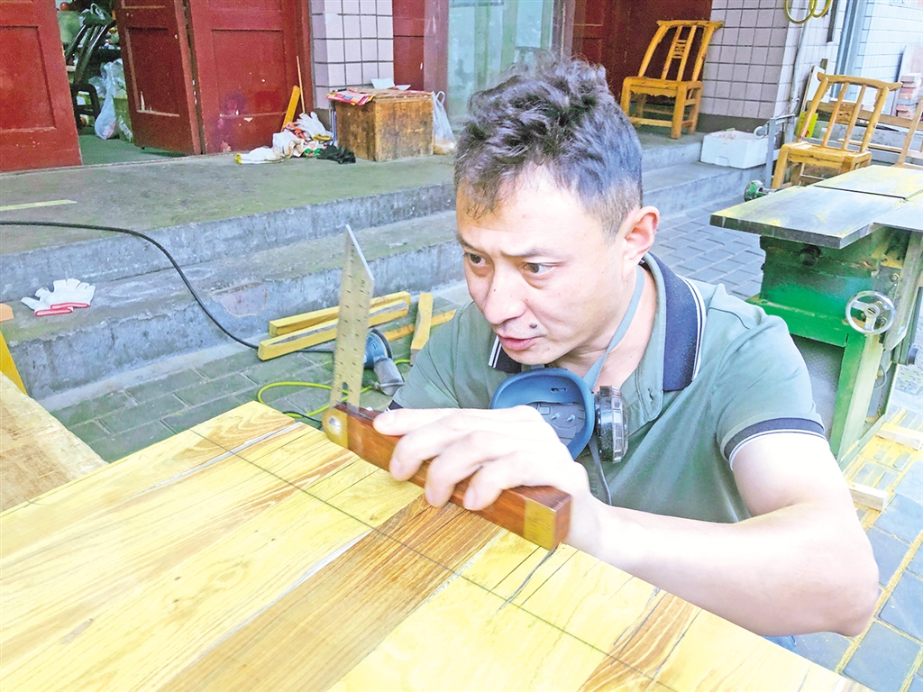 隨著工業(yè)化的發(fā)展,現(xiàn)在定做全套家具的人少了,更多的是做一些長(zhǎng)條桌、馬扎、靠背椅子、菜墩子等等,像鼓樓西、東關(guān)一些傳統(tǒng)老字號(hào)餐飲店里用的就是馬金平做的桌椅,看起來(lái)古樸、坐起來(lái)舒服。