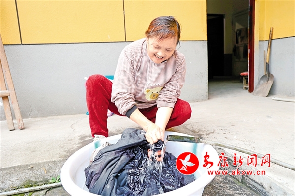 掃完院壩,龔光憲徑自走進(jìn)廚房,不一會兒,就端出了老人喜歡吃的臊子面。吃罷飯后,龔光憲麻利地把公公換下來的衣服放入一個(gè)大盆中,拉來水管蹲在地上搓洗起來。