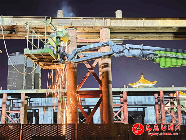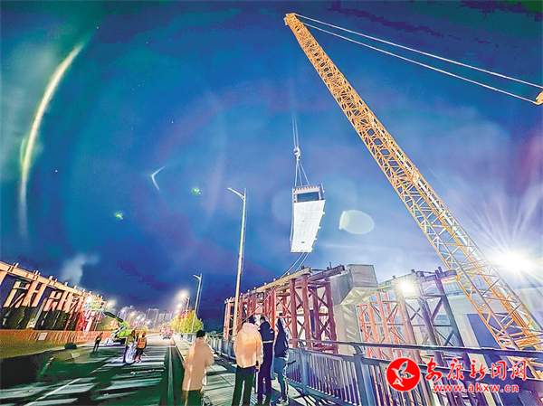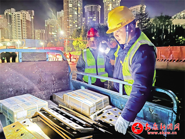 11月25日晚,工程人員檢查橋梁部件。CQy安康新聞網