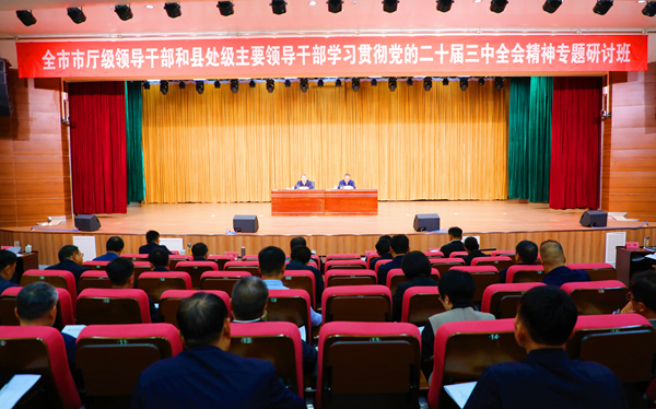 10月15日,全市市廳級(jí)領(lǐng)導(dǎo)干部和縣處級(jí)主要領(lǐng)導(dǎo)干部學(xué)習(xí)貫徹黨的二十屆三中全會(huì)精神專題研討班在市委黨校開班。