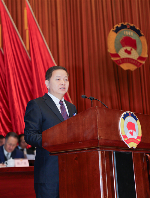 市政協主席周建功代表政協安康市第五屆委員會常務委員會作工作報告。記者 陸青波 攝