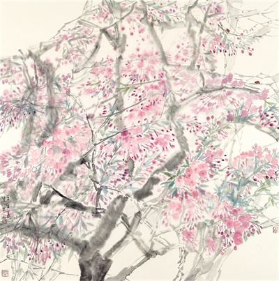 記者:您的花鳥畫在傳統基礎上融入了許多現代元素,能否具體談談您是如何在繼承傳統與創新之間找到契合點的?在寫意與寫實、傳統與現代、具象與抽象之間,您更傾向于追求哪一方面的表現?