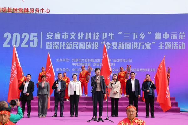 本網訊(通訊員 賈學林)文化惠民添活力,孝義新風潤安康。3月18日,2025年安康市文化科技衛生“三下鄉”集中示范暨深化新民風建設“孝義新風進萬家”主題活動在漢陰縣澗池鎮舉行。市委常委、宣傳部部長陳蓮宣布活動啟動并向“三下鄉”服務小分隊授旗。“三下鄉”市級成員單位、漢陰縣有關負責同志參加活動。