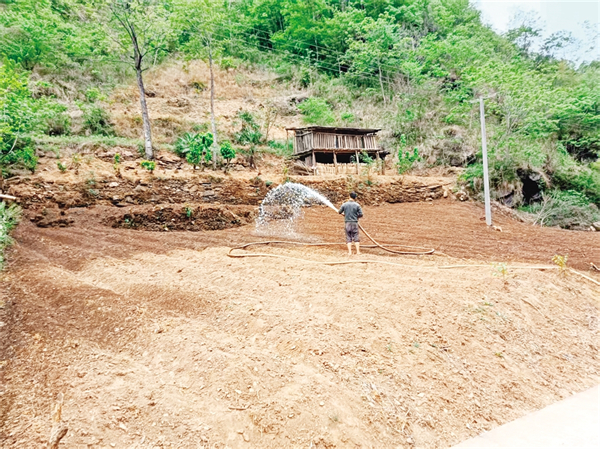 4月25日,平利縣長安鎮金沙河村安排運輸投送農業生產用水,對500畝烤煙幼苗進行灌溉。胡鈴鈴 攝