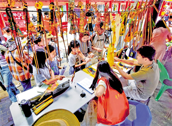 “五一”假期,安康非遺文化展示活動在漢濱區老城街道民俗夜市長廊舉辦,安康皮影吸引游人駐足欣賞。吳定國 攝