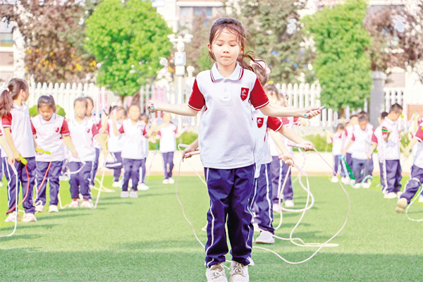 這所建校僅一年多的學校,通過創新構建“138+X”體育活動體系,讓體教融合從理念走向實踐。“‘1’是每天10分鐘眼保健操,‘3’是30分鐘體育課,‘8’是80分鐘大課間,‘X’則是清晨微鍛煉和社團活動。”該校體育教研組組長陳波介紹道,“通過科學規劃,我們確保每個孩子每天都能享受2小時的運動時光。”這一體系的設計,正是對中共中央、國務院提出的“中小學生每天綜合體育活動時間不低于2小時”要求的創新落實,也體現了學校對“健康第一”教育理念的深刻理解。