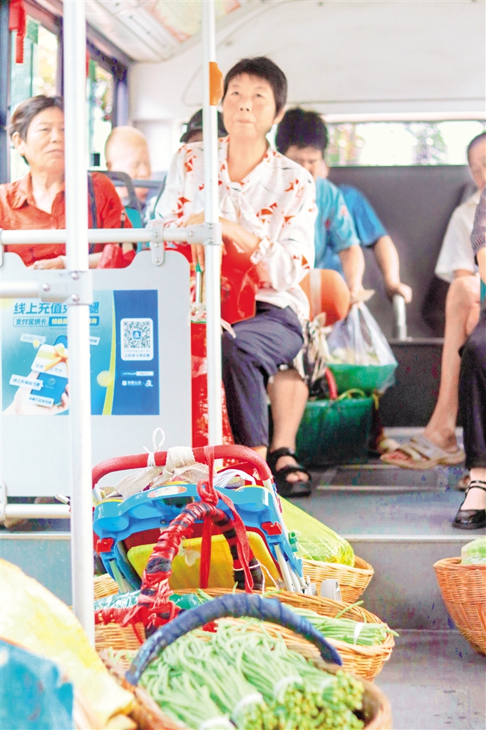 “滴——公益卡。”他刷完卡后,迅速掃視車廂,先把菜筐放在后門邊的空檔處,確保下車快,然后眼疾手快地“占領(lǐng)”了靠近后門的座位。“今兒人少,運(yùn)氣好!”搶到這個(gè)座位,意味著他能早早抵達(dá)市場,在人流涌來前,占一個(gè)靠前又光線好的攤位。這可是兩筐菜賣個(gè)好價(jià)錢的開端。