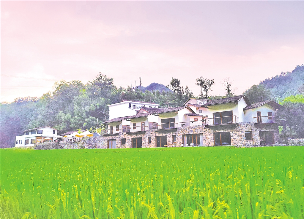 8月7日傍晚,在寧陜縣城關鎮漁灣逸谷田園綜合體,自然美景與現代化民宿相得益彰,構成了一道亮麗的風景線。 王輝 攝