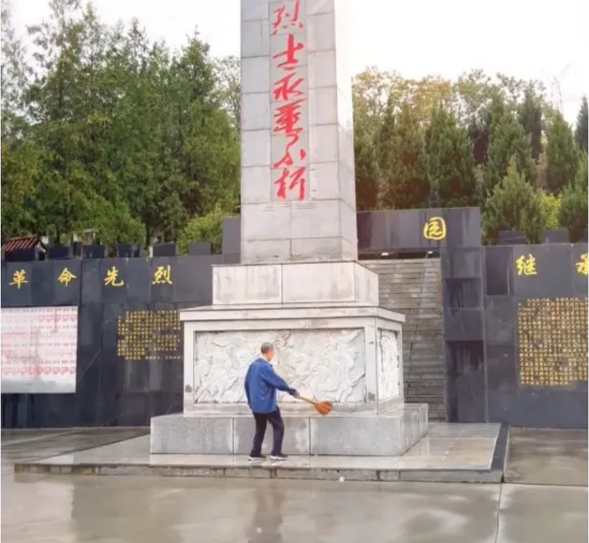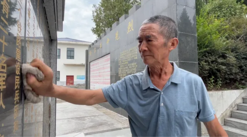 9月5日,守陵人王開茂在烈士陵園擦拭紀念碑。(圖片來源:嵐皋縣融媒中心)UWg安康新聞網