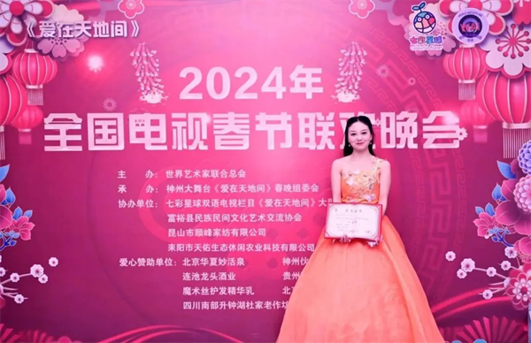 夏梅子在《愛在天地間》春節聯歡晚會上演唱陜南民歌《幸福歌兒唱安康》