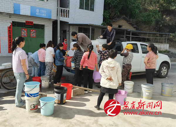 5月19日,平利縣長安鎮積極應對旱情,組織常安鄉建公司開展送水入戶行動,確保村民飲水安全。圖為鎮村干部頂著烈日挨家配送。胡鈴鈴 攝受高溫干旱天氣影響,漢陰……
