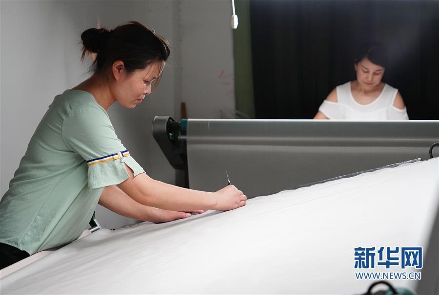 7月19日,工人在石泉縣陜西天成絲業有限公司檢驗車間內檢驗修布。新華社記者 邵瑞 攝