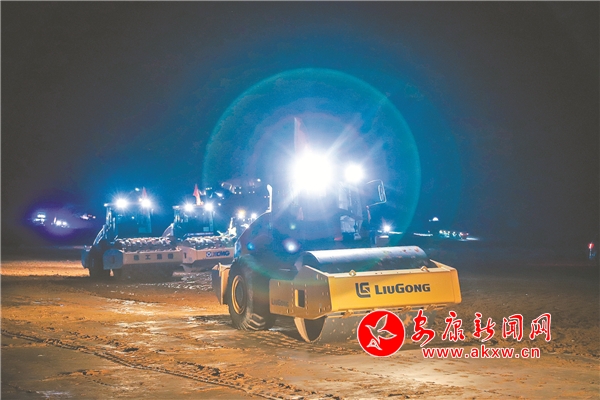 安康新聞網訊(記者 吳單 潘潤生)近200臺翻斗車來回穿梭運送土石方,重達20噸的吊錘反復被大型強夯機從幾十米高空拉起、拋下,發出聲聲巨響,百米之外仍能感受到夯地的震動感。腳手架上、交通路口,工人們有條不紊地進行著作業、指揮著交通……夜幕下的機場施工現場一片繁忙。NFw安康新聞網