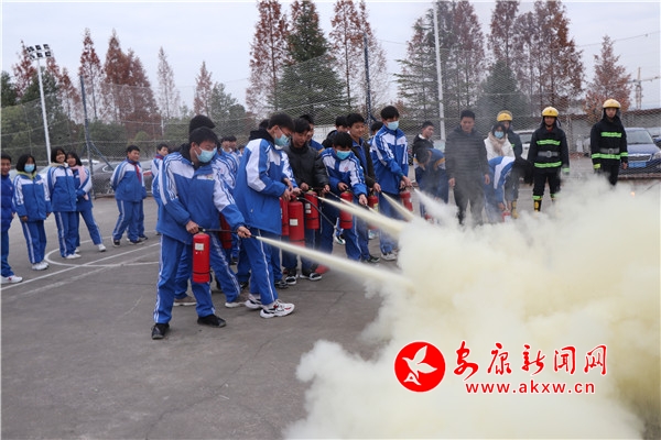 隨后,在籃球場進行了如何正確使用滅火器撲滅火源的操作方法演示,同學們仔細聆聽,牢記每一個步驟,認真學習掌握滅火器的使用方法:提、拔、握、拉。并有序上前,進行了滅火器滅火的實踐操作,大家齊心協力瞬間將一盆大火撲滅。