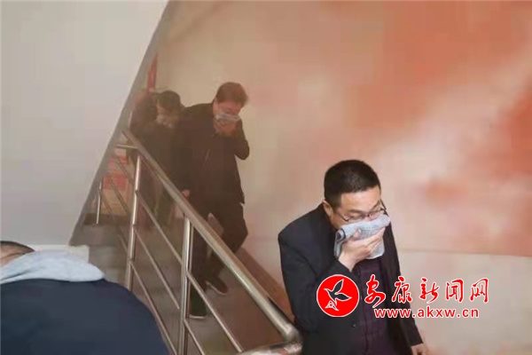 會后,以安全通道起火為模擬場景,組織受訓(xùn)人員開展了應(yīng)急逃生演練。隨著煙霧迅速彌漫,全體受訓(xùn)人員掩住口鼻,迅速、有序地撤離到安全地帶。