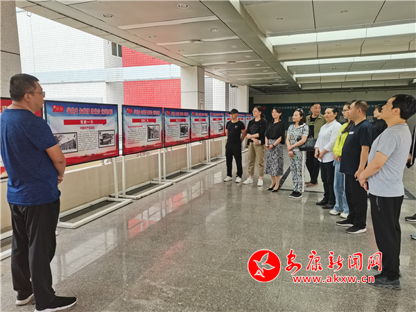 一塊塊圖文并茂的展板,展現了共產黨人在中華民族救亡圖強道路上做出的巨大貢獻和巨大犧牲。在黨史教育宣傳展板前,群藝館廣大干部職工紛紛前來駐足觀看,大家邊看邊交流,有的談論遵義會議的歷史地位,有的有的講述著紅軍爬雪山過草地的英雄事跡,有的當起講解員,向同事講解黨帶領全國人民走過的艱難歲月,感慨當下美好生活的來之不易。