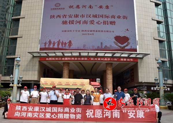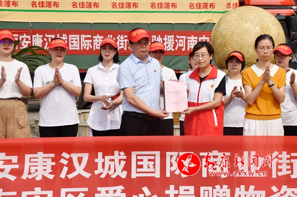 本網訊 8月4日9時,一場馳援河南的愛心捐贈儀式在安康漢城國際商業街舉辦,安康市紅十字會、市工商聯、市應急管理局、陜西安康博泰投資有限公司領導及漢城國際商業街商戶、員工代表共同見證了物資、資金移交過程。