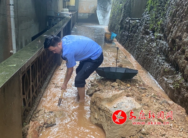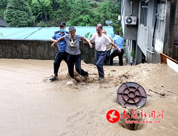 8月22日,紫陽(yáng)縣漢王鎮(zhèn)普降大暴雨,漢王鎮(zhèn)上街道因雨量大發(fā)生洪水內(nèi)澇,直接威脅街道居民住戶生命財(cái)產(chǎn)安全。轄區(qū)民警立即組織群眾用木板擋住洪水,防止洪水進(jìn)入居民樓浸泡發(fā)生房屋垮塌,同時(shí)冒著危險(xiǎn)將街道下水道井蓋掀開(kāi),分流泄洪。