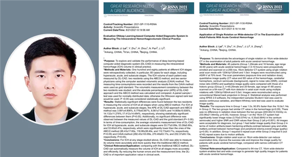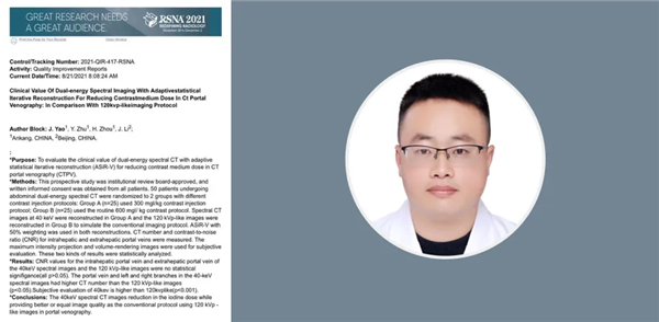 面對失敗,科研小組沒有灰心,而是在失敗中不斷總結經驗,提前投入到2021年的RSNA投稿工作,這一次準備時間更充分,科研討論會頻次更高。在耐心的等待中他們終于迎來了喜訊,賴建東醫生中稿2篇口頭發言,姚俊技師長中稿一篇電子壁報,科室在以RSNA投稿為抓手的科研工作中,終于又邁出了堅實的一步。