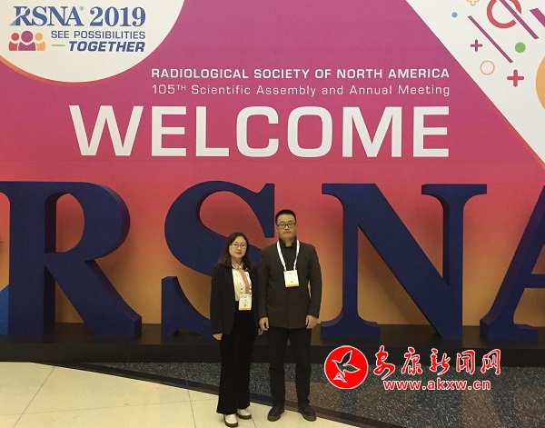 由于臨床工作繁忙,投入到具體投稿工作的只有朱主任和兩名年輕醫生共3個人,在這一個月的時間里,朱主任親自指導并確定掃描方案,收集、分析數據,白天還要應對繁重的臨床工作。投稿期間碰到了很多難題,比如第一次用英文寫作要克服語言障礙,第一次向外國網站投稿對流程不熟悉,需要反復琢磨。那段時間,熬夜成了科研小組成員的家常便飯。功夫不負有心人,截至4月12日,科室終于投出了6篇摘要。振奮人心的是,6篇投稿中3篇,中稿率達到了50%,其中朱亞男主任中了1篇口頭發言和1篇電子壁報,皮之安醫生中了1篇口頭發言。2017年11月底,周和平、朱亞男兩位主任及皮之安醫生應邀前往美國參加了103屆北美放射年會,朱主任及皮之安分別在大會作了發言。這是安康市放射醫學專業第一次參加世界最高級別的學術會議并做大會發言,也第一次把安康市中心醫院的名字展示在世界的學術講臺,這對經濟、交通等相對落后的秦巴地區地市級醫院來說無疑是個重大突破。