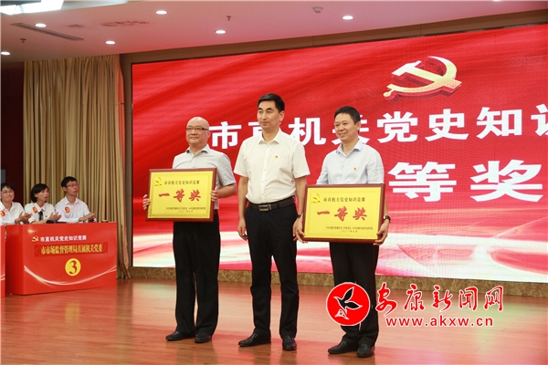 決賽分為個(gè)人必答題、團(tuán)隊(duì)共答題、搶答題、風(fēng)險(xiǎn)題四個(gè)環(huán)節(jié),通過抽簽的方式確定比賽座次。比賽的過程中,還穿插了觀眾答題互動(dòng)環(huán)節(jié)。經(jīng)過緊張的四個(gè)環(huán)節(jié)比拼,最終,市委辦機(jī)關(guān)黨委代表隊(duì)、市委黨校機(jī)關(guān)黨委代表隊(duì)榮獲一等獎(jiǎng),市市場監(jiān)督管理局直屬機(jī)關(guān)黨委代表隊(duì)、市住建局直屬機(jī)關(guān)黨委代表隊(duì)、市政府辦機(jī)關(guān)黨委代表隊(duì)、市委政研室機(jī)關(guān)黨支部代表隊(duì)獲得二等獎(jiǎng)。