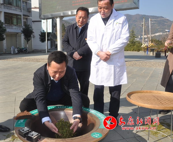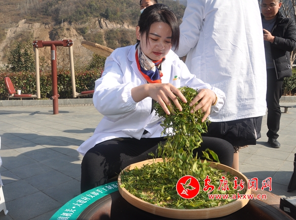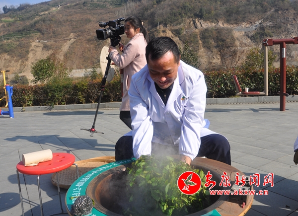 活動中,殺青、揉捻、定型,鮮嫩的茶葉在黨員干部手掌和鍋中上下翻騰,左右揉搓。經(jīng)過近兩個(gè)小時(shí)的耐心制作,成品紫陽綠茶新鮮出鍋,空氣中散發(fā)出濃濃茶香。