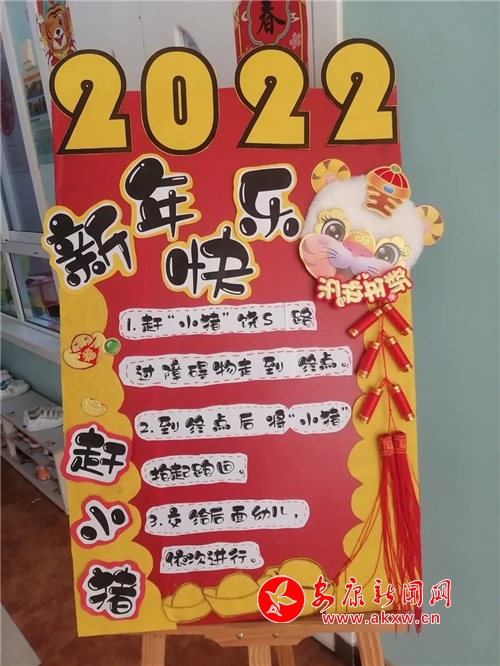 游戲“享”元旦。根據孩子的興趣愛好,設計不同類的游戲項目,以闖關的形式玩游戲,孩子們在游戲中既鍛煉了身體,又收獲了快樂。