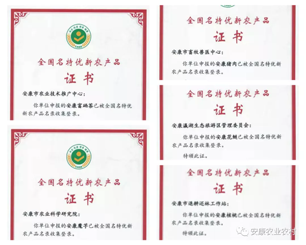 我市圍繞農(nóng)業(yè)五大特色產(chǎn)業(yè),加快建立標(biāo)準(zhǔn)體系、質(zhì)量體系和品牌體系。“安康豬”“安康錢魚”“安康花鰱”等三個(gè)農(nóng)產(chǎn)品獲國家農(nóng)產(chǎn)品地理標(biāo)志登記。“安康富硒茶”上榜100個(gè)以地理標(biāo)志為代表的區(qū)域公用品牌,成為唯一入選的陜茶品牌,并入選獲評最具經(jīng)營力茶葉公用品牌,品牌價(jià)值35.16億元,排名全國第20,陜西第一。“安康漢水魚”成為陜西唯一一個(gè)水產(chǎn)品區(qū)域公用品牌。“安康富硒茶”“安康魔芋”等五個(gè)農(nóng)產(chǎn)品入選2021年首批全國名特優(yōu)新農(nóng)產(chǎn)品名錄。2021年,全市新獲得“兩品一標(biāo)”農(nóng)產(chǎn)品認(rèn)證45個(gè),其中綠色食品認(rèn)證32個(gè)、有機(jī)農(nóng)產(chǎn)品10個(gè)、地理標(biāo)志農(nóng)產(chǎn)品3個(gè),全國名特優(yōu)新農(nóng)產(chǎn)品8個(gè)。