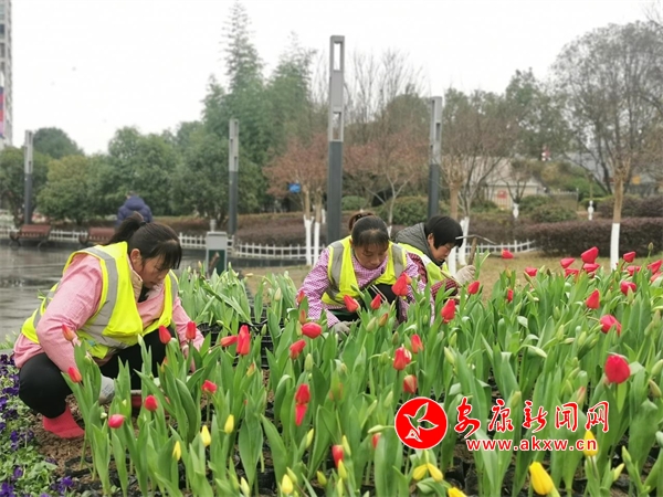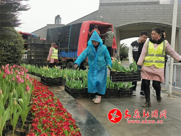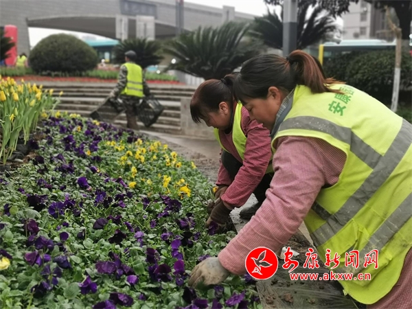 1月23日,為喜迎2022虎年春節,園林綠化工人們在安康中心城區金地廣場、漢江一橋南北頭、橋西廣場、信合廣場、金地廣場、雷神殿十字和城堤進行綠化美化。此次主要栽植的是抗寒能力強的郁金香、三色堇、角堇和報春花等花卉。(通訊員 鄭時根) Vuj安康新聞網