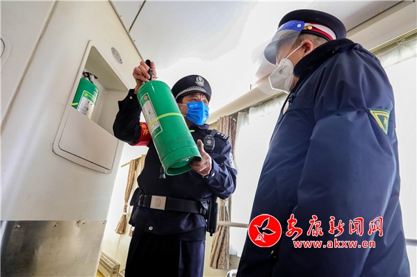 乘警來鴻在列車上檢查消防器材Zg4安康新聞網