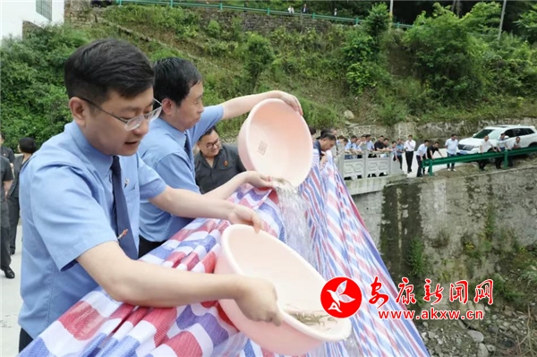 6月5日,在剛剛過去的第51個世界環(huán)境日,安康鐵檢院、安鐵法院、安康市農業(yè)農村局等單位在紫陽聯合開展增殖放流活動,用三名被告繳納的野生動物資源損失費購買錢魚魚苗10000余尾,投放在案發(fā)地水域,及時修復因犯罪行為而受損的任河國家級保護區(qū)的生態(tài)環(huán)境。