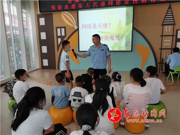 在安康圖書館少年活動室,執(zhí)法人員通過播放未成年人防沉迷網(wǎng)絡公益宣傳片、發(fā)放“文明上網(wǎng)促健康成長 你我攜手創(chuàng)文明城市”倡議書、現(xiàn)場互動等方式,宣傳沉迷網(wǎng)絡的危害,并以案釋理,使參與活動的青少年和家長朋友,對網(wǎng)絡的利弊有了清醒的認識和理解。在座的小朋友在聆聽講解后積極發(fā)言,踴躍參與競答。