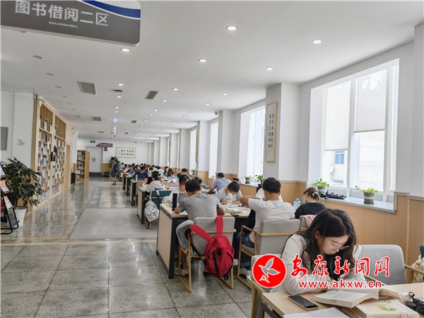 在安康圖書館筆者看到,圖書館內清涼靜謐、書香四溢,各個閱覽室內都能看到學生認真閱讀的身影,他們徜徉在書的海洋,安靜閱讀,給自己“充電”。據悉,安康圖書館上午九點開門,由于場地有限,容納讀書學習的桌椅不多,所以很多想來圖書館看書學習的學生就會早早來排隊占位。