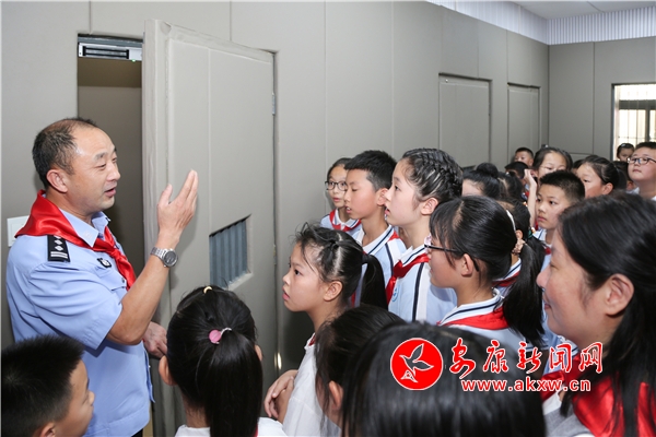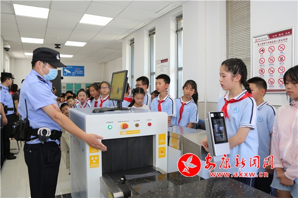 同學們在法警帶領下,依次經過安檢門。更讓同學們好奇的是法警小哥的警用裝備,同學們認真聆聽法警對每樣警用裝備的講解,還不時發問,興趣盎然。隨后,同學們依次參觀了法庭、羈押室和全國維護婦女兒童權益先進集體工作室,對法庭開庭審理案件、羈押犯罪嫌疑人和保護婦女兒童權益等知識有了更深入的認識和了解。