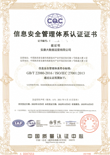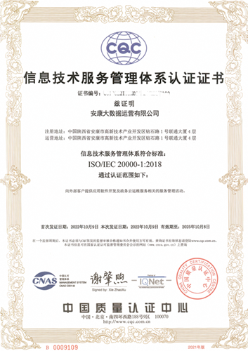 近日,經過了全面、專業、細致的審核,安康大數據公司成功獲得信息技術服務管理體系(ISO/IEC20000-1:2018)與信息安全管理體系(ISO/IEC27001:2013)認證證書。