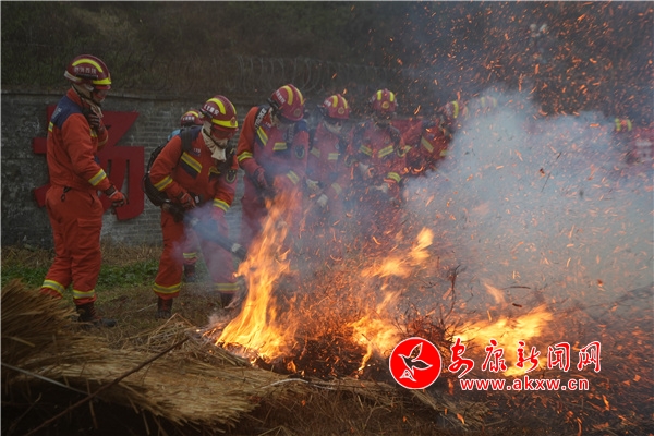 演練緊盯實戰需求,擬定恒口示范區安全村附近林地發生森林火災,真煙真火設置災情,調集支隊森林火災處置專業隊力量共計6車60人前往處置。采取全實景模擬、全流程處置、全要素開展,從無人直升機中繼通信、山林火勢堵截、隔離帶開辟等多方位展示森林火災特點、難點,示范了此類災情處置要點、關鍵點,取得了較好預期效果。